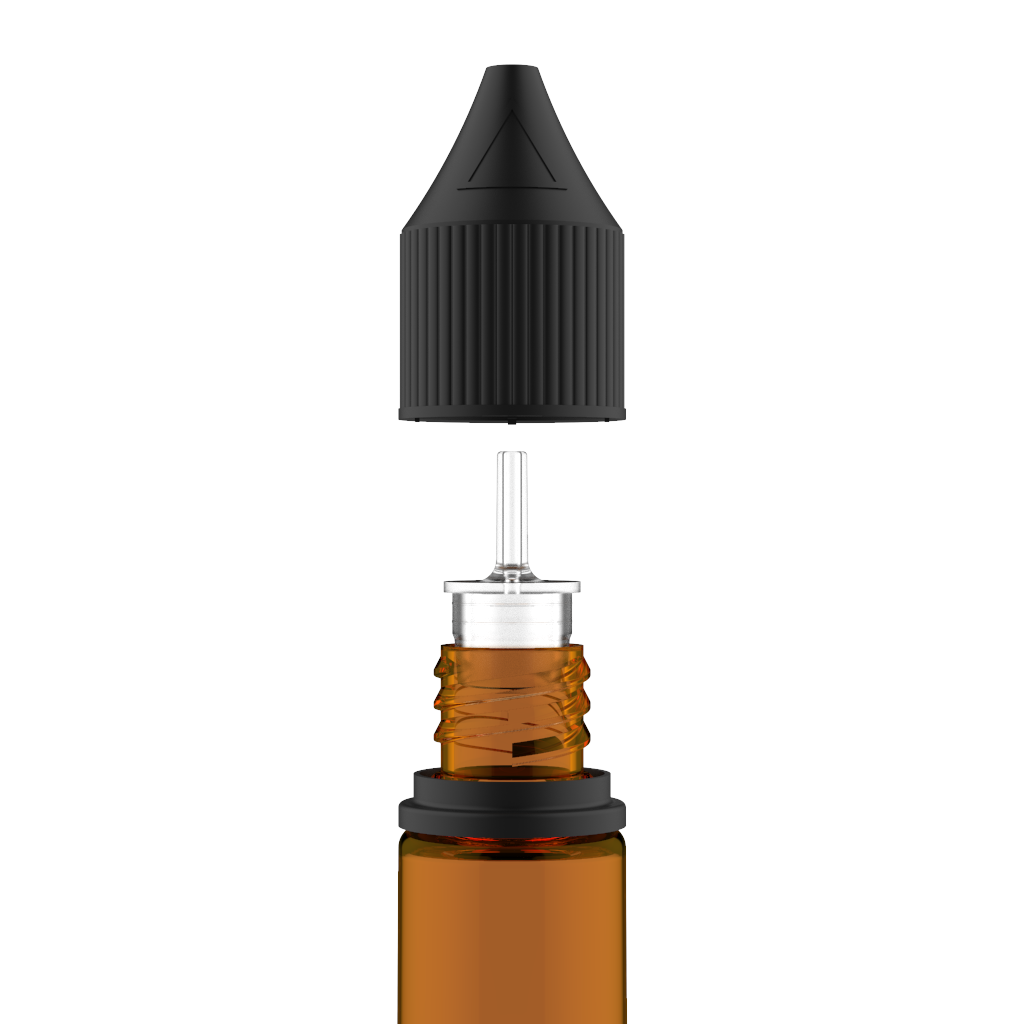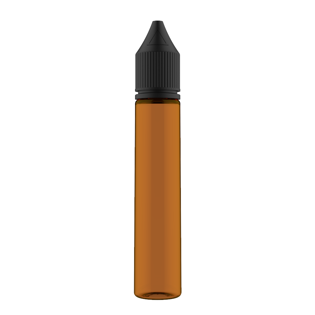 30ml PET Unicorn Bottle (Translucent Amber Bottle with Opaque Black Cap)